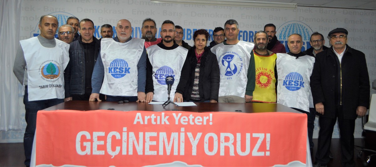 “Geldiğimiz noktada nüfusun yüzde 1’ini oluşturan tuzu kuru olanların, rantçı çevrelerin, sermayenin dışındaki tüm halkın daha fazla dayanacak gücü kalmadı. Öncelikle yaşanan kayıpların bir nebze de olsa azaltılması için kamu emekçilerinin ve tüm emeklilerin maaşlarına en az asgari ücret artış oranı kadar zam yapılmasını, insanca yaşamaya yetecek bir ücret için en düşük kamu emekçisinin maaşına eş yardımı, çocuk yardımı, kira yardımı, ulaşım yardımı gibi sosyal ödemelerde yapılacak artışlarla yoksulluk sınırı üzerine çıkarılmasını, tüm vergi yükünü ücretlilerin omuzlarına yıkan, her yıl daha da büyüyen gelir vergisi adaletsizliğine derhal son verilmesini, gelir vergisi birinci dilim oranının yüzde 15 ten yüzde 10’a düşürülerek yoksulluk sınırına kadar olan maaşların-ücretlerin birinci vergi diliminde sabitlenmesini talep ediyoruz. İktidarın sermayeden yana politikalarının ağır sonuçlarını yaşayan tüm kesimlerle birlikte mücadele ederek insan onuruna yaraşır bir yaşamı inşa edeceğiz. KESK olarak, iktidarlardan icazet beklemek yerine her zaman olduğu gibi tüm kamu emekçilerini ve emeklilerini bugünün acil talebi olan en az asgari ücret artışı talebine olduğu kadar, en temel talebimiz olan insanca yaşamaya yetecek yoksulluk sınırı üzerinde ücret talebine sahip çıkmak için omuz omuza vermeye çağırıyoruz.”