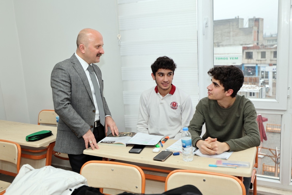 Adıyaman Valisi Dr. Osman Varol, İl Emniyet Müdürü Cihat Dağdeviren ile birlikte Adıyaman Belediyesine ait Kültür ve Eğitim Merkezini ziyaret ederek merkez bünyesinde kurulan dersliklerde YKS ve KPSS’ye hazırlanan gençlerle bir araya geldi.